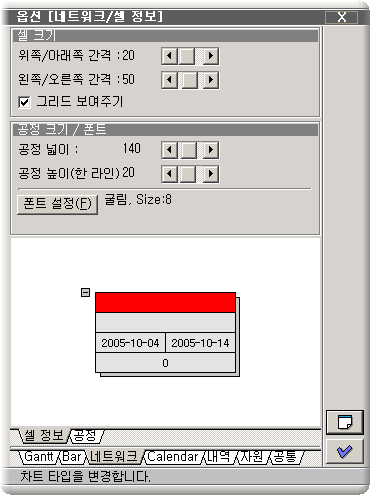 ³×Æ®¿öÅ© Â÷Æ®ÀÇ ¼¿ Å©±â ¹× ³×Æ®¿öÅ© °øÁ¤ÀÇ Å©±â, ÆùÆ® µîÀ» ¼³Á¤ÇÕ´Ï´Ù.