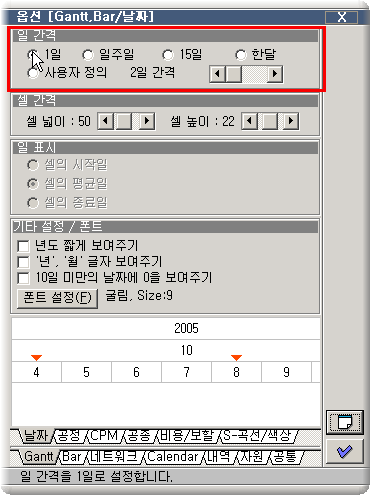 ȤÀº °£Æ® Â÷Æ®¿¡¼ <Ctrl> + <+> ۸¦ °è¼Ó ´·¯ 1ÀÏ °£°ÝÀ¸·Î Á¶Á¤ÇÕ´Ï´Ù.