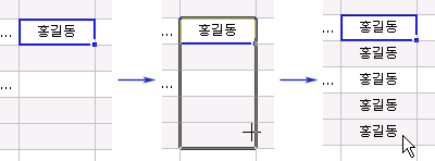 ±× ´ÙÀ½¿¡ ±× ¼¿À» Ŭ¸¯ÇÏ¸é ¼¿ÀÇ ÇÏ´Ü¿¡ ÀÛÀº ºí¸´ÀÌ ³ªÅ¸³³´Ï´Ù. ±× ºí¸´À» ¸¶¿ì½º·Î µå·¡±×ÇÏ¿© ¿øÇÏ´Â ºÎºÐ±îÁö ²ø¾î¼ ³õ½À´Ï´Ù.±×·¯¸é ÇϳªÀÇ ¼¿¿¡ ÀÔ·ÂµÈ µ¥ÀÌÅͰ¡ ¿©·¯ Ä÷³¿¡ °ÉÃļ º¹»çµË´Ï´Ù.