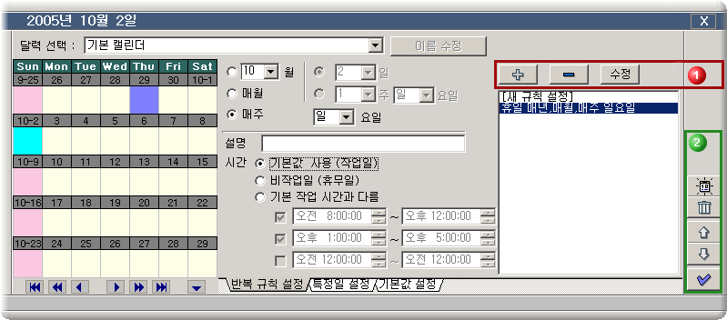±×·±µ¥, 2005³â 10¿ù 2ÀÏÀ» È®ÀÎÇØ º¸¸é '¸ÅÁÖ ÀÏ¿äÀÏ'À̶ó´Â ±ÔÄ¢°ú ¶Ç '10¿ù 2ÀÏÀº ÀÛ¾÷ÀÏ'À̶ó´Â ±ÔÄ¢¿¡ ¸ðµÎ Àû¿ëµË´Ï´Ù.